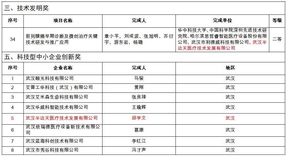 湖北省科学技术奖——技术发明奖:由武汉半边天联合华中科技大学等多家校企协同攻关的《前列腺癌早期诊断及微创治疗关键技术研发与推广应用》项目,聚焦临床痛点,在前列腺癌诊断与治疗解决方案上实现关键技术突破,为提升前列腺癌诊疗效率、改善患者预后提供了重要技术支撑;